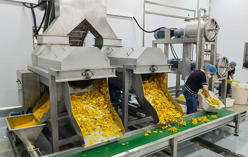 概述:1. 原料接收与分选 接收芒果:新鲜芒果运送到工厂后,进行初步检查,确保无腐烂、无病虫害。 分选:按成熟度、大小和品质分级,剔除不合格果实。